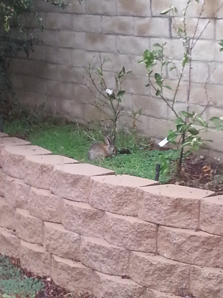 Inside planter munching on wild sorrel